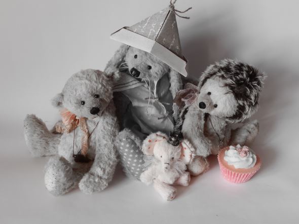 Meine Bastelpackungen beinhalten neben dem Material für den Bären/Freund (z.B. Fell, Gelenke, Augen, Nasengarn und Pfotenstoff) zusätzlich auch die Kleidung und ausgewählte Accessoires. Daher kann ich sie auch nur in kleinen Stückzahlen anbieten. Nutzen Sie also den direkten Kontakt mit mir – so können Sie jederzeit erfahren, welche Bastelpackungen aktuell vorrätig sind.