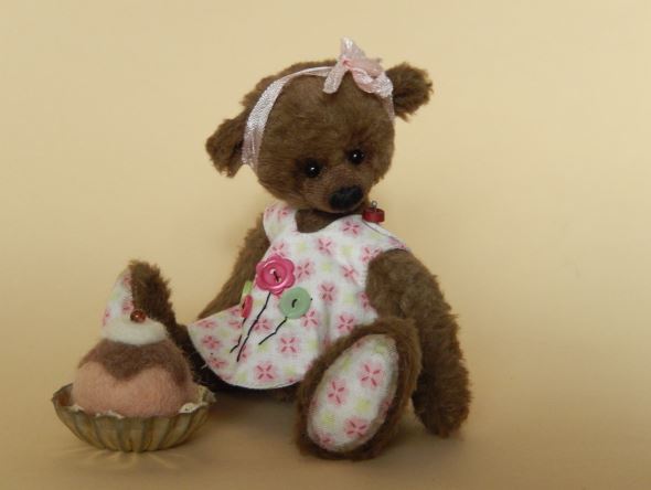 Ich bin ca. 14 cm groß und aus dunkelbrauner Viskose handgenäht.