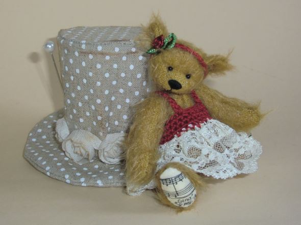 Ich bin ca. 9 cm groß und aus zimtfarbenem, leicht verfilztem Mohair handgearbeitet.