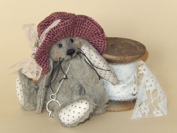 Ich bin ca. 10 cm groß und aus brau-grauer Viskose handgenäht.