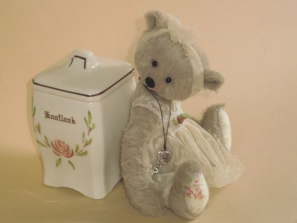 Ich bin ca. 16 cm groß und aus beiger Viskose handgefertigt.