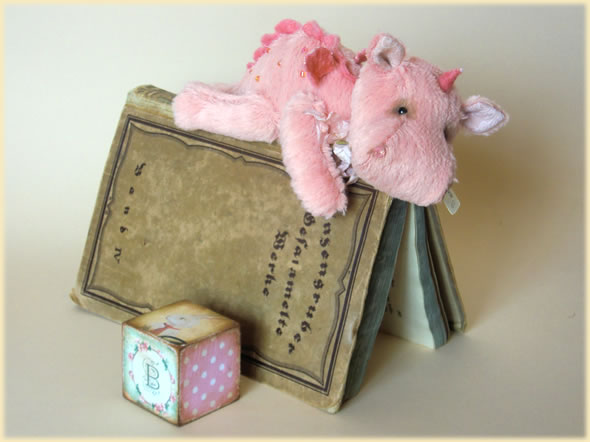 Ich bin mit meinen 15 cm aus lachsfarbener Viskose trotzdem schon ein richtiger Glücksdrache. Meine Flügelchen müssen zwar noch wachsen, aber mein Hörnchen soll schon Glück bringen, wenn Du es reibst. Probier es doch einfach aus!