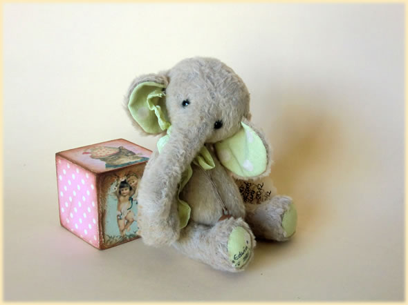 Wir Elefanten haben alle 5 Gelenke und sind mit Stahlgranulat bzw. Mineralgranulat und Fiberfill/Stopfwatte gefüllt. Mit viel Liebe sind wir alle nach eigenen Entwürfen handgefertigt. Vielleicht sind wir ja gerade deshalb bei Sammlern so begehrt …