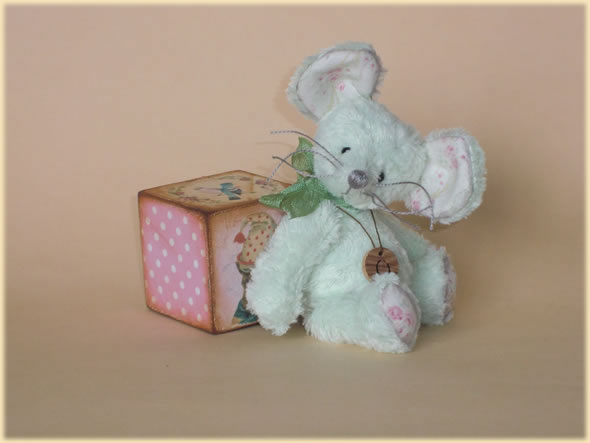 Ich bin ca. 12 cm groß und aus mintfarbener Viskose handgenäht. Meine Schleife in petrol und mein Holz-Anhänger mit meinem Anfangsbuchstaben runden mein Aussehen doch ab – oder!?